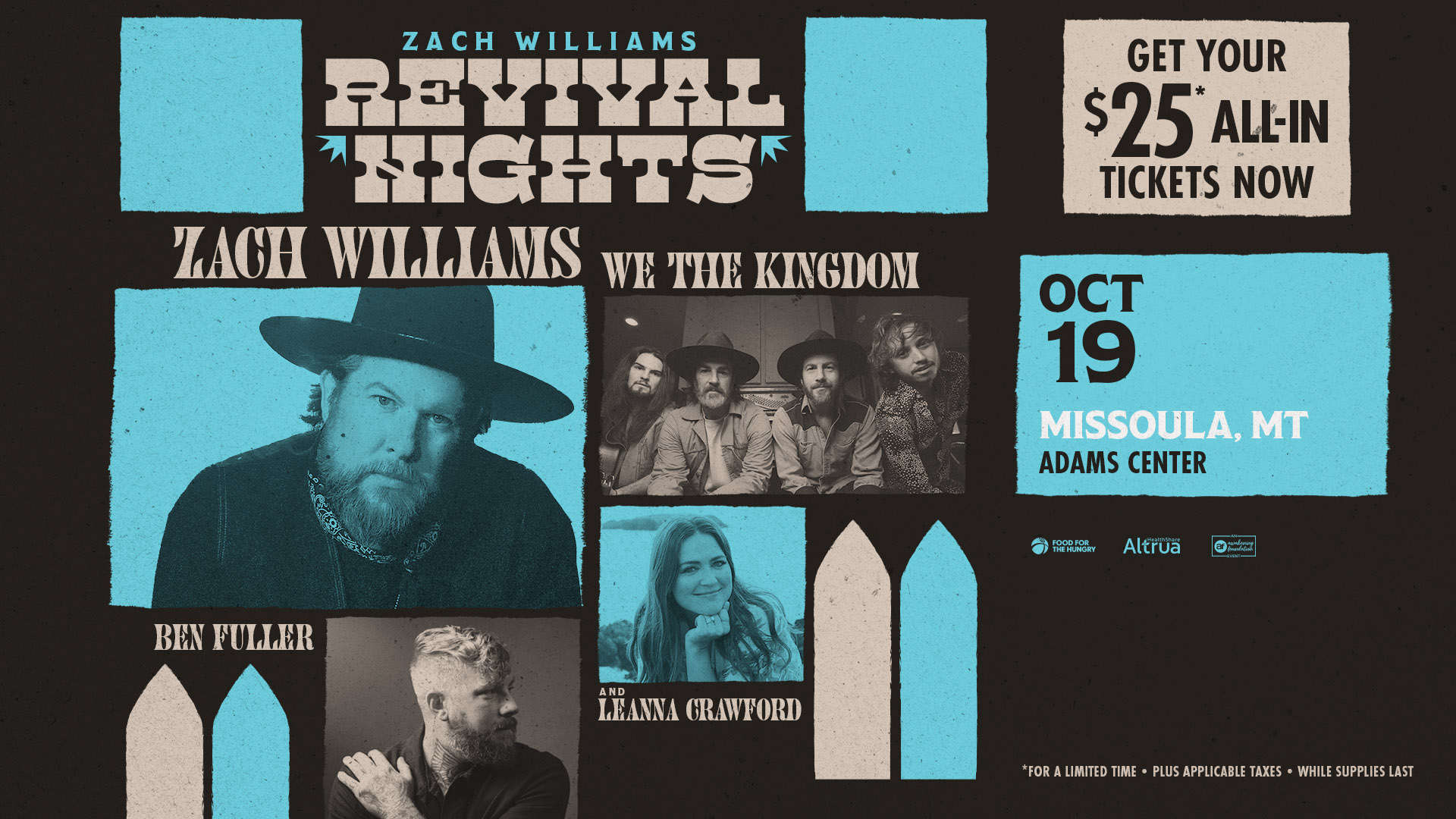 Zach Williams, We The Kingdom, Ben Fuller, and Leanna Crawford | Sun, Oct 19, 2025 ⦁ 7:00pm